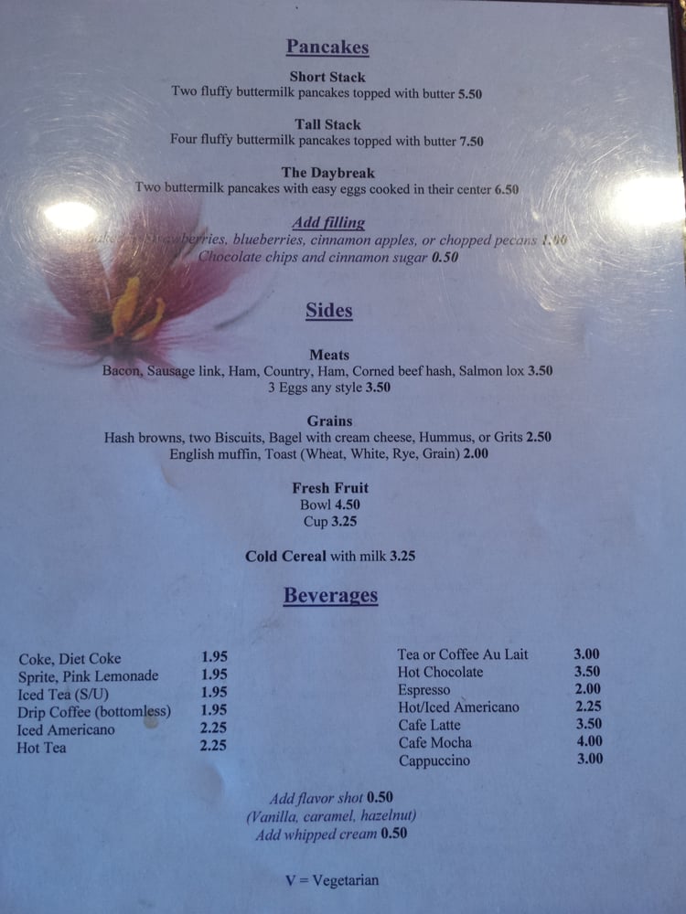 Ham, American cheese, onion, bell peppers. Fresh eggs omelette, toast, and hash browns or grits.